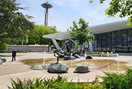 This summer, the Seattle Center’s Fountain of Creation by Everett DuPen re-opened after a renovation. The bronze sculptures and stones stand on a plaza splash pad in an intimate garden oasis. In a hot August afternoon, the DuPen family and community members gathered to dedicate a place to play and for quiet contemplation. The sculpture, stones, and water compel interaction with children and adults dancing with the water.